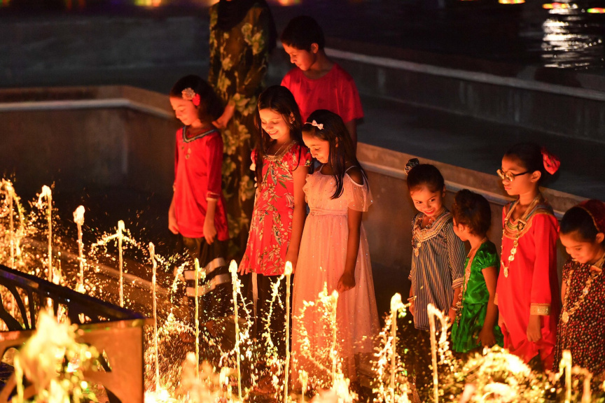 ސަރުކާރުގެ އެކި މުއައްސަސާތައް ގުޅިގެން ޒީނަތްތެރިކޮށްފައިވާ އާންމު ތަންތަން ދިއްލާލުން ފައްޓަވައިދެއްވައި، މިއުޒަކާއެކު ފެން އަރުވައިދޭ ވަޑާން އަލުން ހުޅުވައިދެއްވީ މިރޭ ޖުމްހޫރީ މައިދާނުގައި ބޭއްވި "އީދު އަލި" ރަސްމިއްޔާތުގައި ރައީސް ޑރ. މުޙައްމަދު މުއިއްޒެވެ.