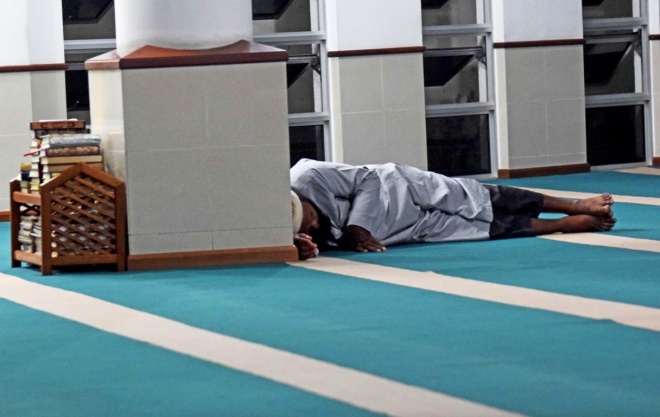 މިސްކިތުގައި މީހަކު ނިދާފައި-- ސަން ފޮޓޯ: އަލީ ނަސީރު