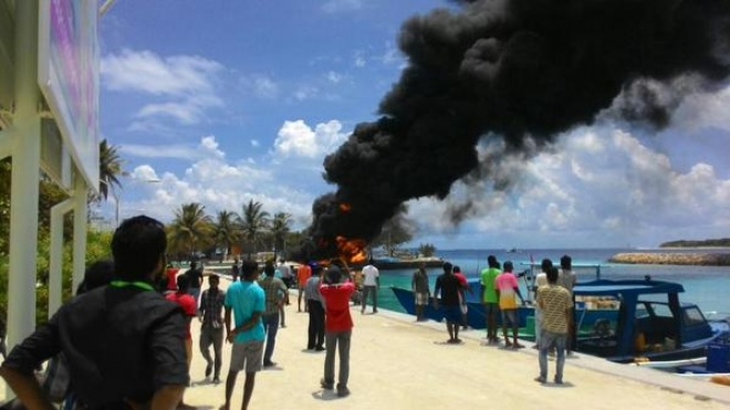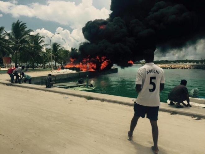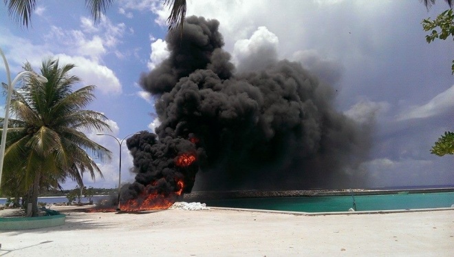 އޭދަފުށީ ބަނދަރު ސަރަހައްދަށް ބަލާފައި ހުރި ޕެޓްރޯލު ފީފާ ތަކެއްގައި އަލިފާން ރޯވުން: ފޮޓޯ--ފޭސްބުކް