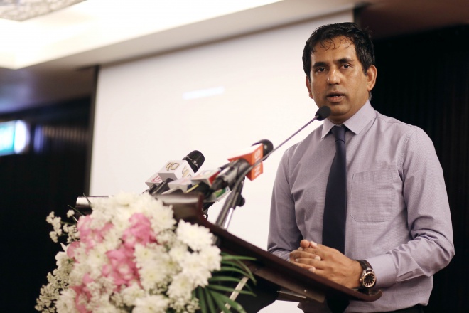 މިއަދުގެ ހަފްލާގައި މިނިސްޓަރު ތާރިގު ވާހަކަދައްކަވަނީ: ސަން ފޮޓޯ/ ފަޔާޒު މޫސާ