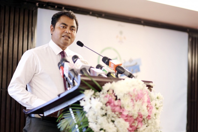 މިއަދުގެ ހަފްލާގައި މިނިސްޓަރު ސައީދު ވާހަކަދައްކަވަނީ: ސަން ފޮޓޯ/ ފަޔާޒު މޫސާ