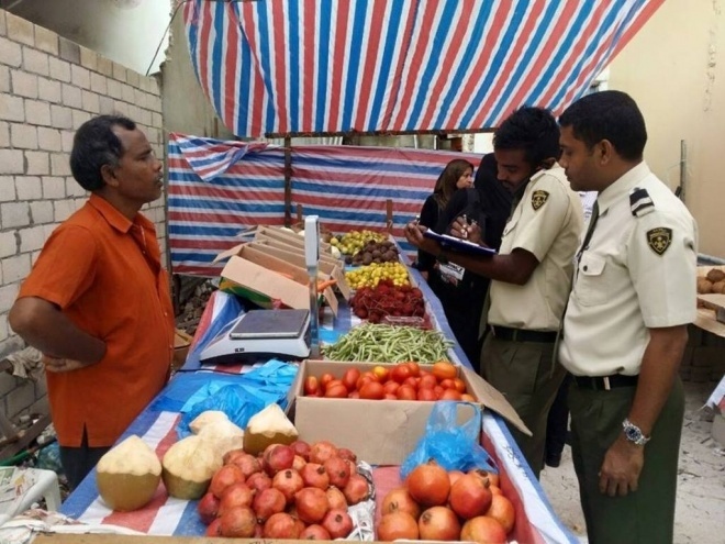 މާލޭގައި ހިންގާ ވަގުތީ ބާޒާރެއްގައި ވިޔަފާރިކުރާ ފަރާތެއް އިމިގްރޭޝަނުގެ އޮފިޝަލުން ޗެކް ކުރަނި --- ފޮޓޯ: އިމިގްރޭޝަން