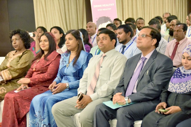 މިއަދު ހޮޓެލް ޖެން ގައި ބޭއްވި "ނޭޝަނަލް ނިއުޓްރީޝަން ކޮންފަރެންސް 2015"ގެ ހުޅުވުމުގެ ރަސްމިއްޔާތުގެ ތެރެއިން: އެ ކޮންފަރެންސްގައި އެކި މުވައްސަސާތަކުން 63 ފަރާތަކު ބައިވެރިވެފައިވޭ-- ސަން ފޮޓޯ: އަލީ ނަސީރު