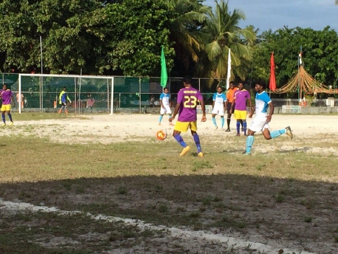 ސިޔާމް މައުރޫފް ސޮކާ އިއްޔެ ހަވީރު ހެނބަދޫއާ މަނަދޫ ކުޅުނު މެޗްގެ ތެރެއިން --- ފޮޓޯ: ހަފްސީ އަބްދުﷲ
