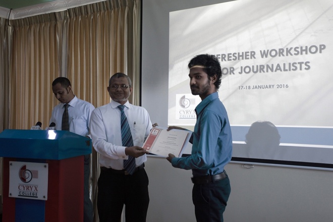 ދިވެހި ނޫސްވެރިންނަށް އަމާޒުކޮށްގެން ސައިރިކްސް ކޮލެޖުން ކުރިއަށް ގެންދިޔަ "ރިފްރެޝަރ ވޯކްޝޮޕް" މިއަދު ނިންމާލައިފި އެވެ.