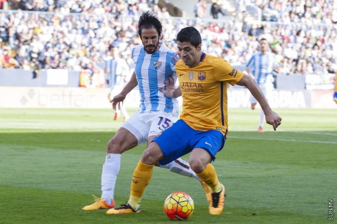 ސްޕެނިޝް ލީގްގައި ބާސެލޯނާ އާއި މަލާގާ ކުޅުނު މެޗުގައި ބަސާގެ ސުއަރޭޒް އަތުން ބޯޅަ ހޯދުމަށް މަލާގާގެ ކުޅުންތެރިއަކު މަސަތްކަތް ކުރަނީ --- ފޮޓޯ:އޭޕީ