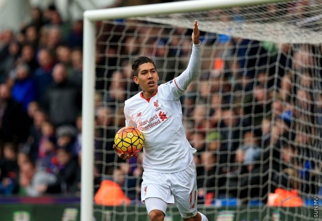 އިނގިރޭސި ޕްރިމިއާ ލީގްގައި ރޭ ކްރިސްޓަލް ޕެލަސް އާއި ލިވަޕޫލް ކުޅުނު މެޗުގައި ލިވަޕޫލްގެ ފުރަތަމަ ގޯލު ރޮބާޓޯ ފަމީނޯ ކާމިޔާބް ކުރުމަށްފަހު އުފާފާޅު ކުރަނީ --- ފޮޓޯ: އޭޕީ