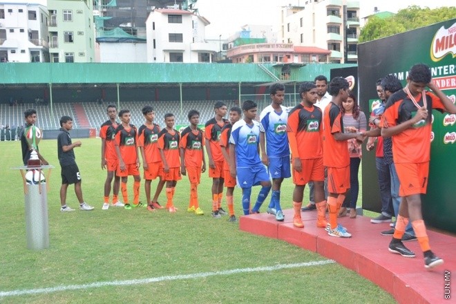 އިންޓަ ސްކޫލް 18 އަހަރުން ދަށުގެ ފުޓުބޯޅަ މުބާރާތުގެ ރަނަރަޕް ގަލޮޅު މަދަރުސާ ---- ސަން ފޮޓޯ: އަލީ ރިފްޝާން