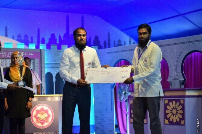 ނ. އަތޮޅަށް ހުޅުވާލައިގެން ސަން ފައުންޑޭޝަނުން ބޭއްވި ގުރުއާން މުބާރާތުގެ ދަރިވަރަކަށް ހުސައިން ސާލިމް މުހައްމަދު އިނާމް ހަވާލުކޮށްދެއްވަނީ : ސަން ފޮޓޯ