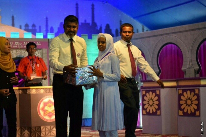ނ. އަތޮޅަށް ހުޅުވާލައިގެން ސަން ފައުންޑޭޝަނުން ބޭއްވި ގުރުއާން މުބާރާތުގެ ބައިވެރިއަކަށް ޑރ. އަޝްރަފު އަބްދުއްރަހީމް އިނާމް ހަވާލުކޮށްދެއްވަނީ : ސަން ފޮޓޯ