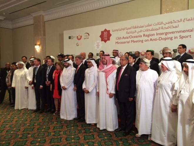 ގަތަރުގައި ކުރިއަށްދާ ތޭރަ ވަނަ އޭޝިއަން ރީޖަން އިންޓަ ގަވަމަންޓް މިނިސްޓަރުންގެ ކުޅިވަރުގެ އެންޓި ޑޯޕިން ބައްދަލުވުމުގެ ތެރެއިން --- ފޮޓޯ: ޔޫތު މިނިސްޓްރީ