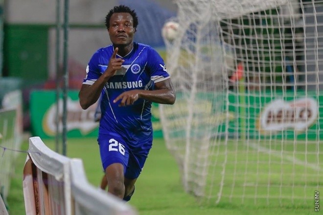 އުރީދޫ ދިވެހި ޕްރިމިއާ ލީގްގައި މިރޭ ނިއު ރޭޑިއަންޓާއި ޓީސީ ކުޅުނު މެޗުގައި ނިއުގެ ގޯލު މައިކަލް ކާމިޔާބް ކުރުމަށް ފަހު އުފާފާޅު ކުރަނީ --- ސަންފޮޓޯ: ފަޔާޒް މޫސާ