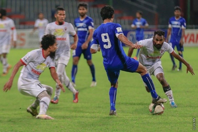 އުރީދޫ ދިވެހި ޕްރިމިއާ ލީގްގައި މިރޭ ނިއު ރޭޑިއަންޓާއި ޓީސީ ކުޅުނު މެޗުގެ ތެރެއިން --- ސަންފޮޓޯ: ފަޔާޒް މޫސާ