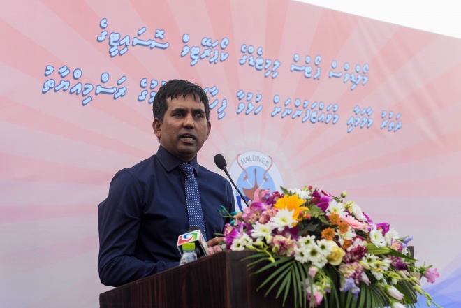 އެމްޕީއެލްގެ މުވައްޒަފުންނަށް ހާއްސަކޮށްގެން މީރުބަހުރު ބަނދަރުގައި ގާއިމްކުރި ފިހާރަ ހުޅުއްވައިދެއްވުމަށް މީރުބަހުރު ބަނދަރުގައި ބޭއްވި ރަސްމިއްޔާތުގައި އިކޮނޮމިކް މިނިސްޓަރު ސައީދު ވާހަކަފުޅުދައްކަވަނީ --- ސަން ފޮޓޯ/ މުހައްމަދު އަފްރާހް