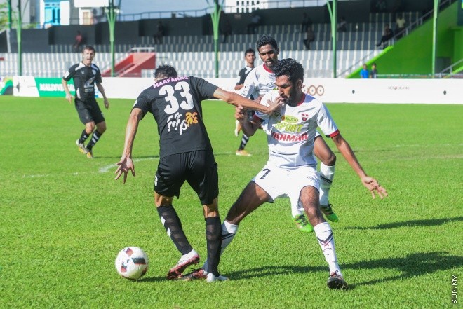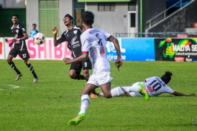 އޮގަސްޓް 18، 2016: އުރީދޫ ދިވެހި ޕްރިމިއަރ ލީގުގައި ޓީސީ އާއީ އީގަލްސް ބައްދަލު ކުރި މެޗުގެ ތެރެއިން--- ސަން ފޮޓޯ/ މުހައްމަދު އަފްރާހް