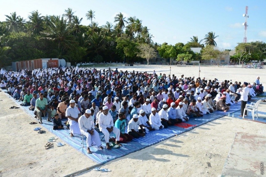 ށ. ކަނޑިތީމުގައި ބޮޑު ޖަމާއަތެއްގައި އީދު ނަމާދު ކުރުމަށްފަހު ރަށު ރައްޔިތުން އެކުގައި ވަނީ ސައިބޮއެފައި