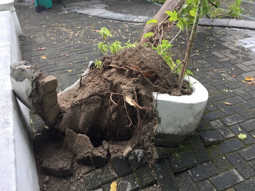 ބިހުރޯޒު ކަމަނާ މިސްކިތުގެ ގޯތިތެރޭގައި ހުރި ބޮޑު ގަހެއް ވެއްޓިއްފައި-- ސަން ފޮޓޯ: އަޙްމަދު މުޖްތަބާ