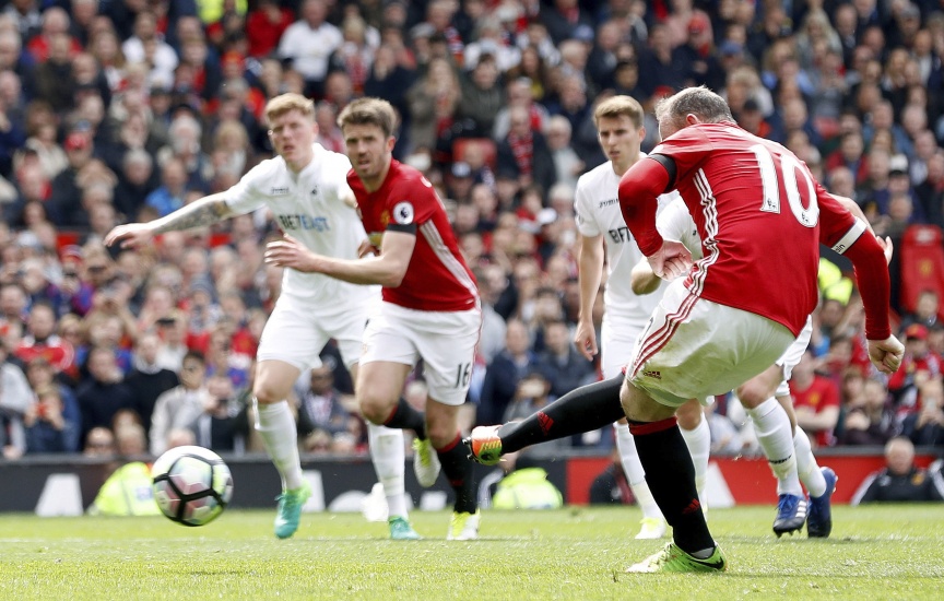 މެންޗެސްޓާ ޔުނައިޓެޑްގެ އިނގިރޭސި ފޯވަޑް ވޭން ރޫނީ ޕެނަލްޓީއެއް ފޮނުވާލަނީ: އޭނާއަކީ ޔުނައިޓެޑް އަދި އިނގިރޭސި ގައުމީ ޓީމަށް ވެސް އެންމެ ގިނަ ލަނޑު ޖަހައިދިން ކުޅުންތެރިޔާ --- ފޮޓޯ/ އޭޕީ