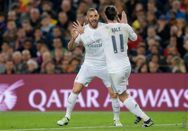 ކަރިމް ބެންޒެމާ ގެރެތު ބޭލްއާއެކު އުފާފާޅުކުރަނީ -- ފޮޓޯ: އޭޕީ
