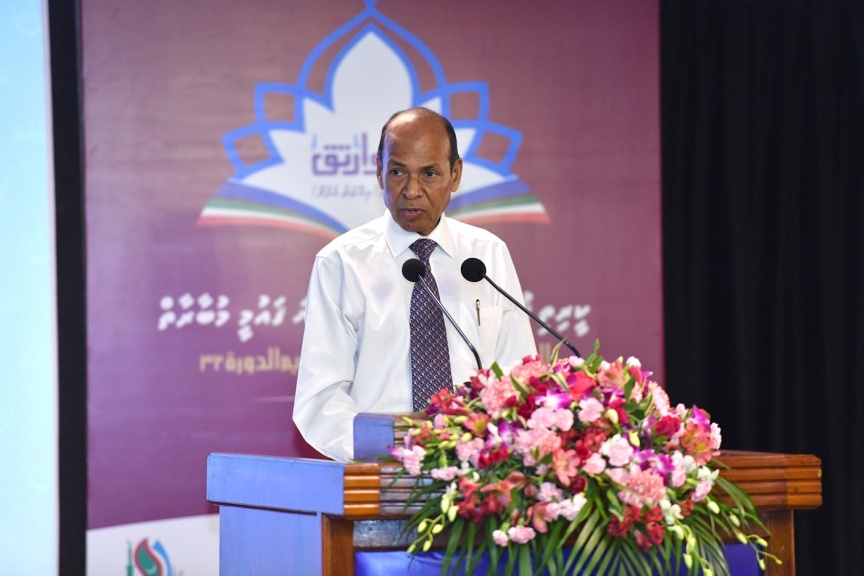 ޤުރުއާން ކިޔެވުމުގެ ގައުމީ މުބާރާތުގެ ނިމުމުގެ ރަސްމިއްޔާތުގައި ކީރިތި ޤުރުއާނާބެހޭ މަރުކަޒުގެ ރައީސް އިބްރާހީމް ރަޝީދު މޫސާ ވާހަކަފުޅުދައްކަވަނީ --- ފޮޓޯ/ ރައީސް އޮފީސް