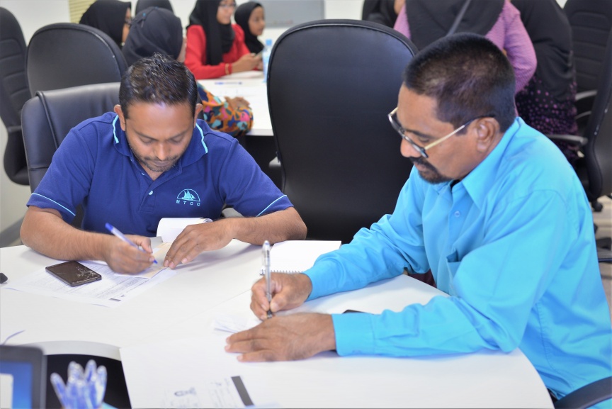 ހިއްސާދާރުންނަށް ހިއްސާ ވިއްކަން ފެށުމުގެ ގޮތުން ނޫސްވެރިންނަށް މައުލޫމާތު ދެއްވުމަށް އެމްޓީސީސީގެ ޓަވަރުގައި ބޭއްވި ނޫސްވެރިންގެ ބައްދަލުވުން --- ސަން ފޮޓޯ/ ޖަޒްލާން މުހައްމަދު